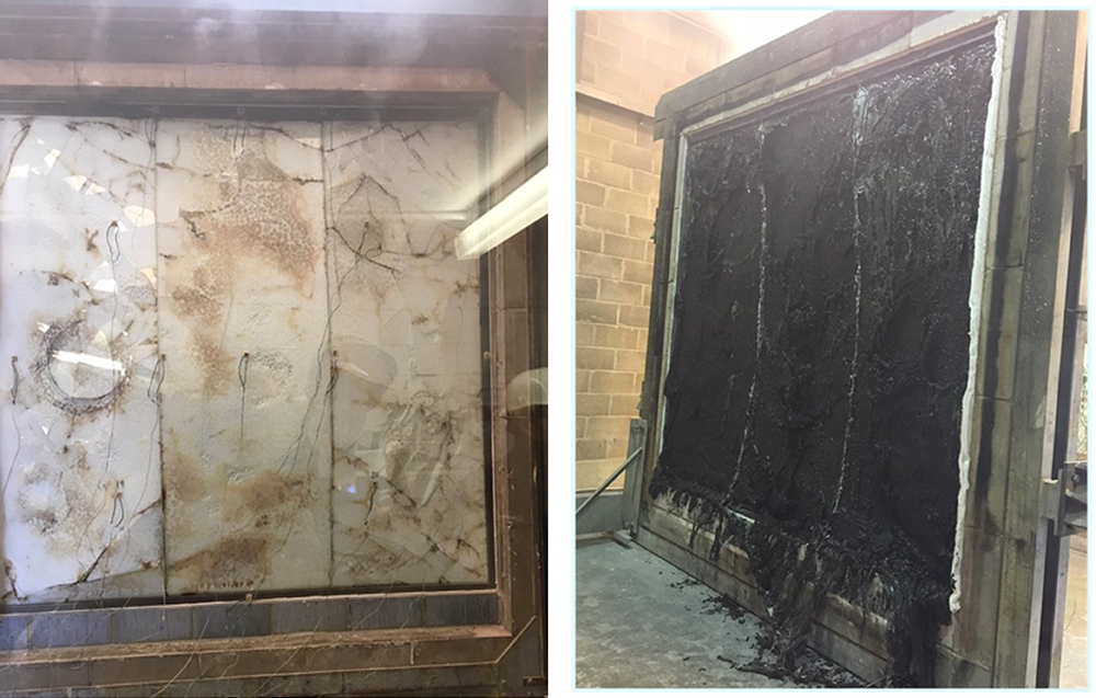 Front and back of EI60 silicone jointed glazed screen following a successful test